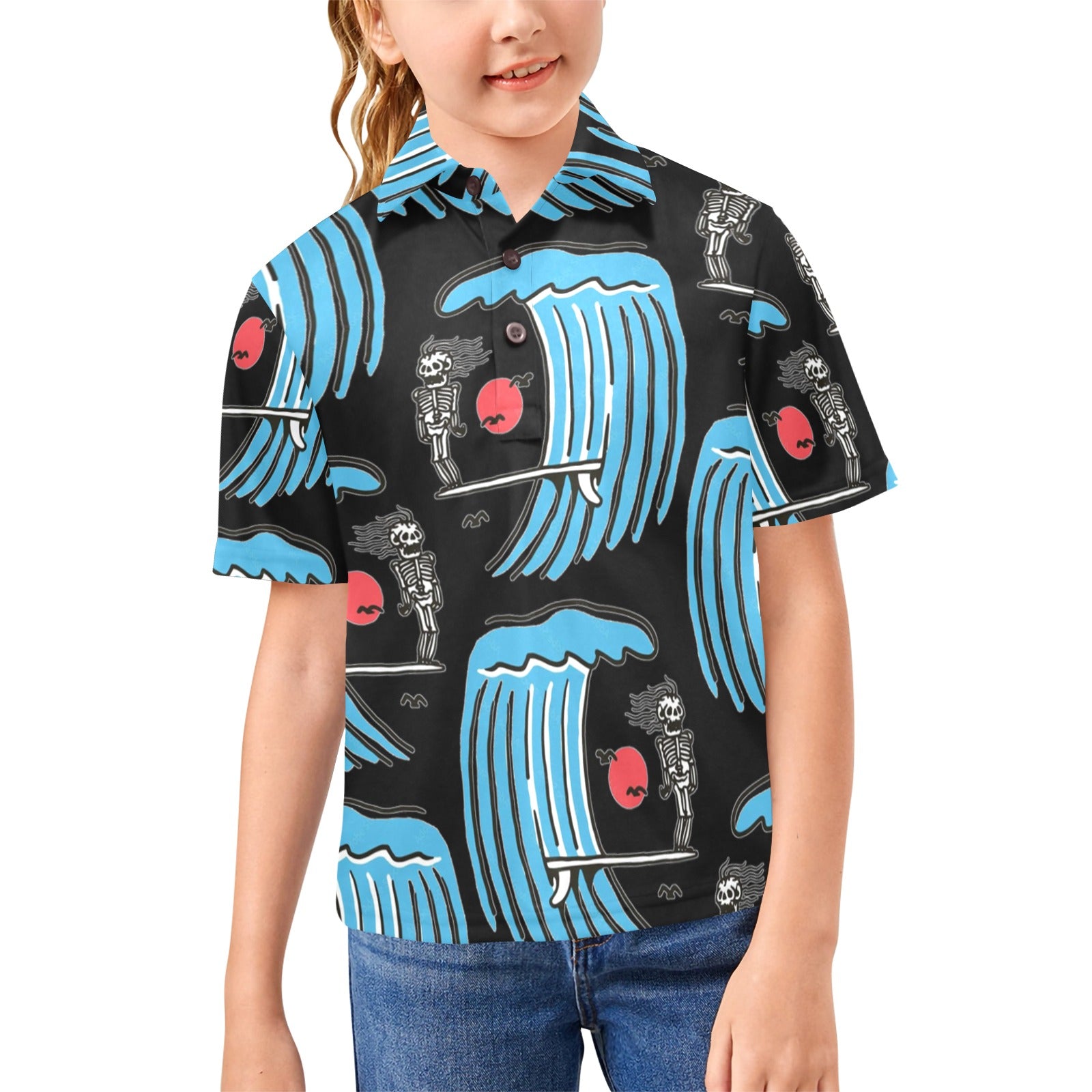 【Product description】Designed for girls aged 8-15,this POLO shirt is made of premium polyester fabric, which is soft and comfortable to the touch, absorbing sweat and breathable. Classic POLO shirt style, printed with cute patterns, make your baby look fresh and smart. Suitable for summer, to meet the needs of schools, sports, travel and other occasions.